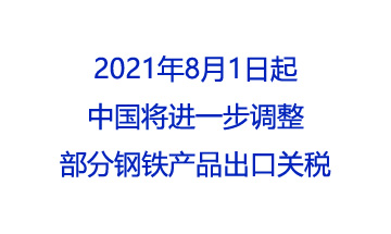 • 2021年8月1日起中國將進一步調整部分鋼鐵產品出口關稅